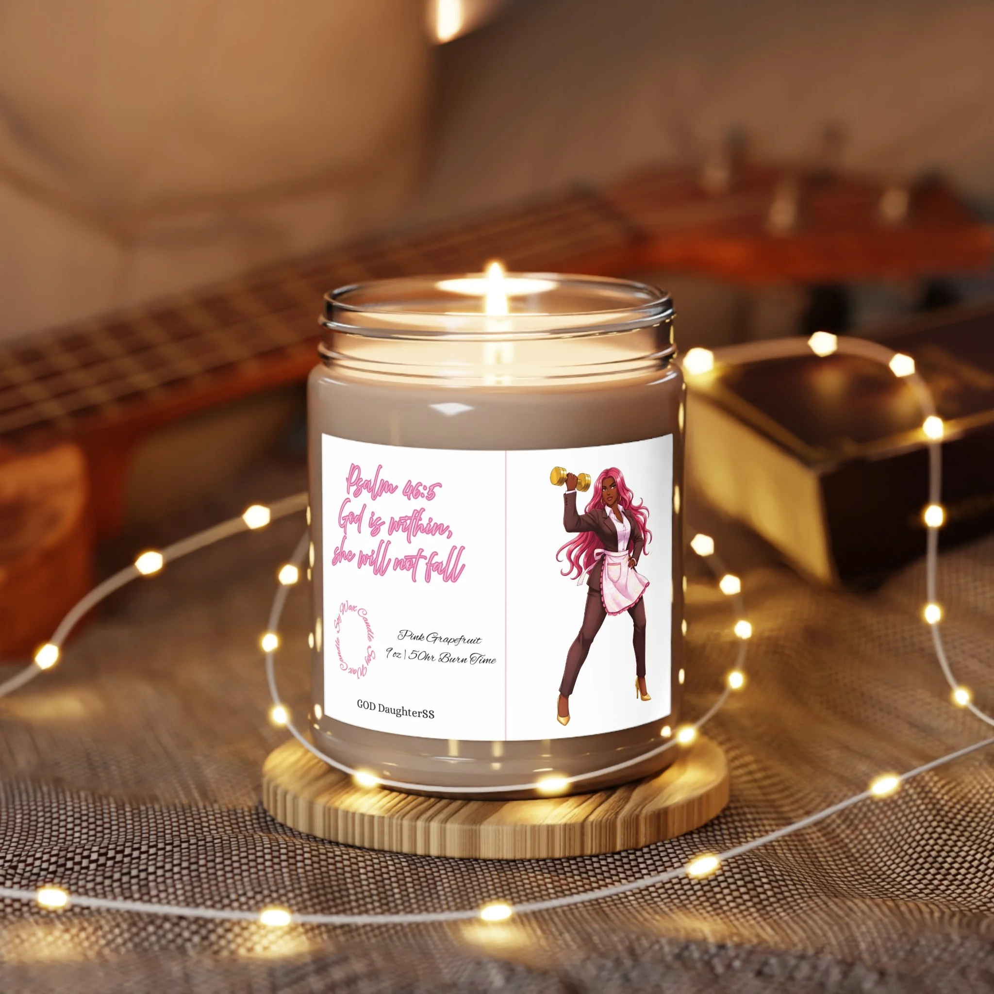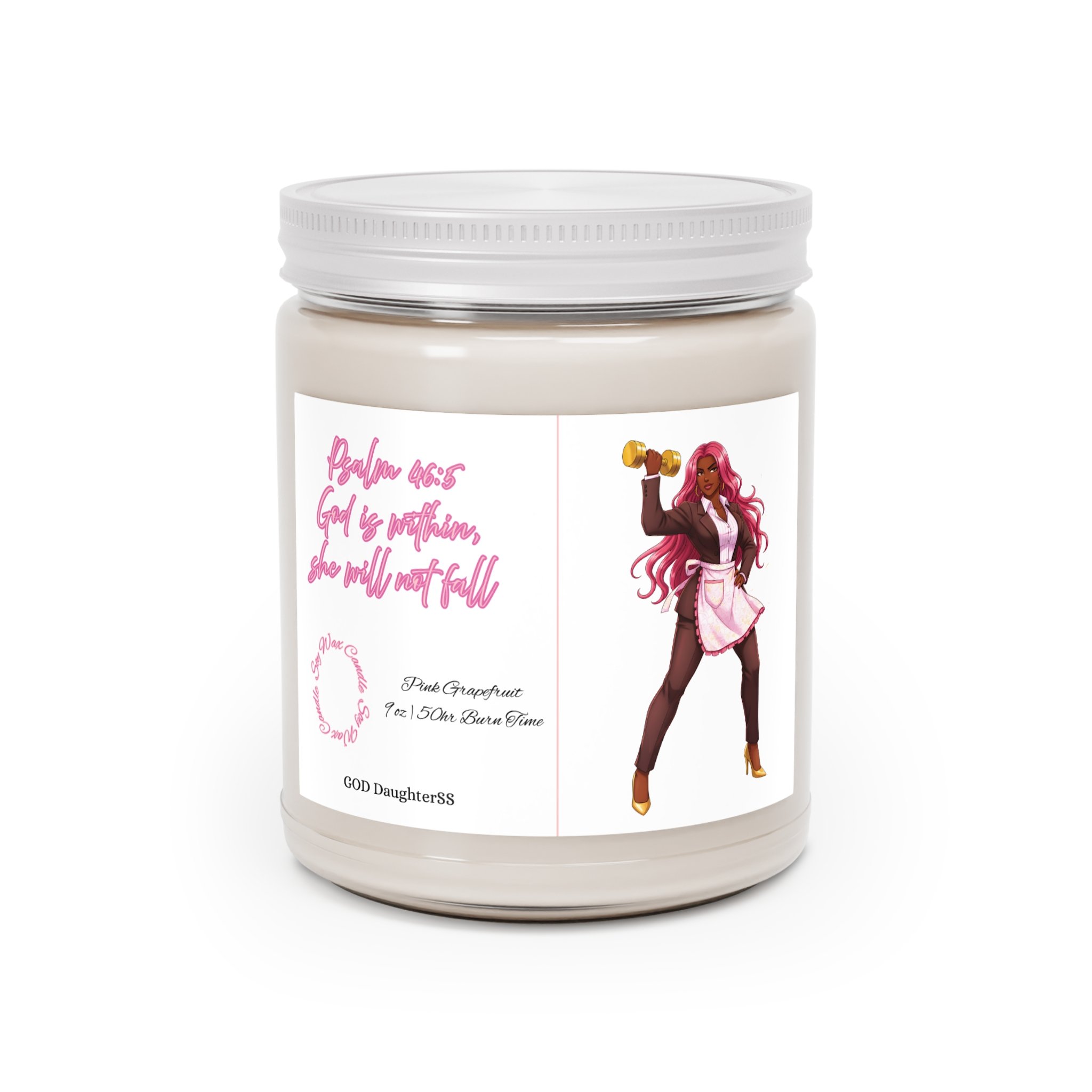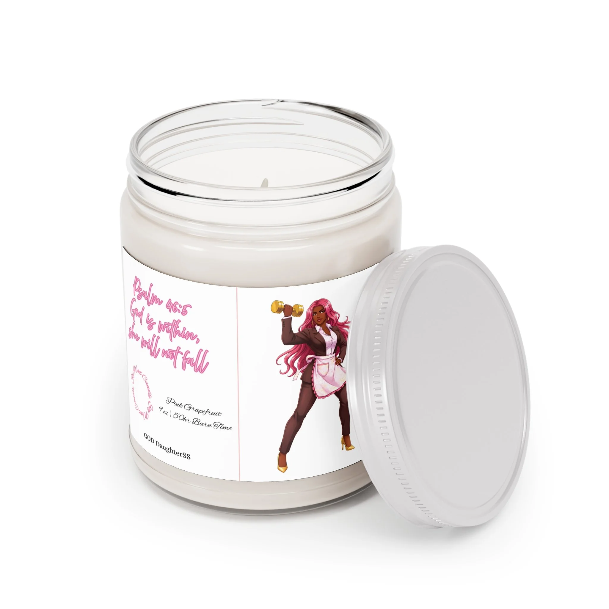 Light a reminder of who you are. 💕 The She Will Not Fall candle features Psalm 46:5 and a bold, faith-filled woman who does it all—home, business, and self-care. Infused with fresh pink grapefruit, this candle fuels focus, peace, and confidence while you build, rest, and reset. Created for multi-faceted women walking in faith and purpose Hand-poured from USA-grown soyCrafted to ignite your inner CEO, our Pink Grapefruit fragrance is a vibrant fusion of zesty and elegant freshness for mood lighting. The clear glass jar and white lid slip easily into a vanity, home gym shelf, or bedside table; when the wax is gone, the glass is ready to be cleaned and reused as decor or storage. Thoughtful scent blends, a long 50–60 hour burn, and an eco cotton wick make this candle feel like a small ritual of calm and empowerment.